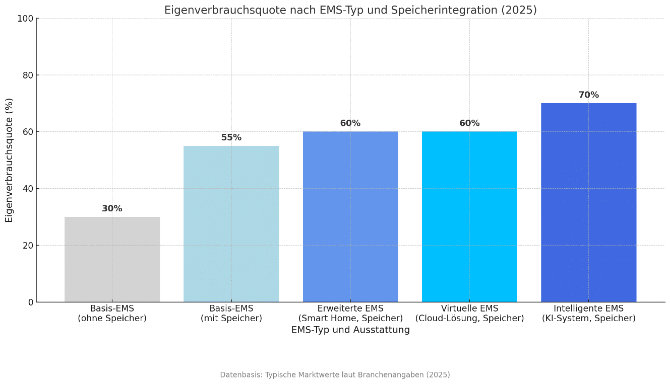 Ein intelligentes EMS steigert deinen Eigenverbrauch erheblich, optimiert Stromkosten, maximiert Einsparungen und macht dich weitgehend unabhängig von steigenden Strompreisen.