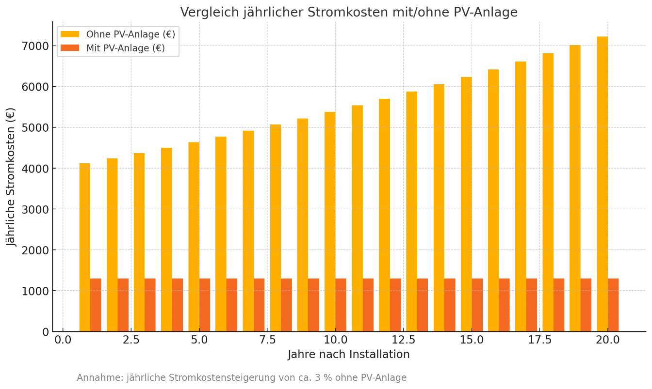 | PV-Anlage (Solarmodule + Wechselrichter) | 12.000–20.000 € (ca. 1.200–2.000 €/kWp) |