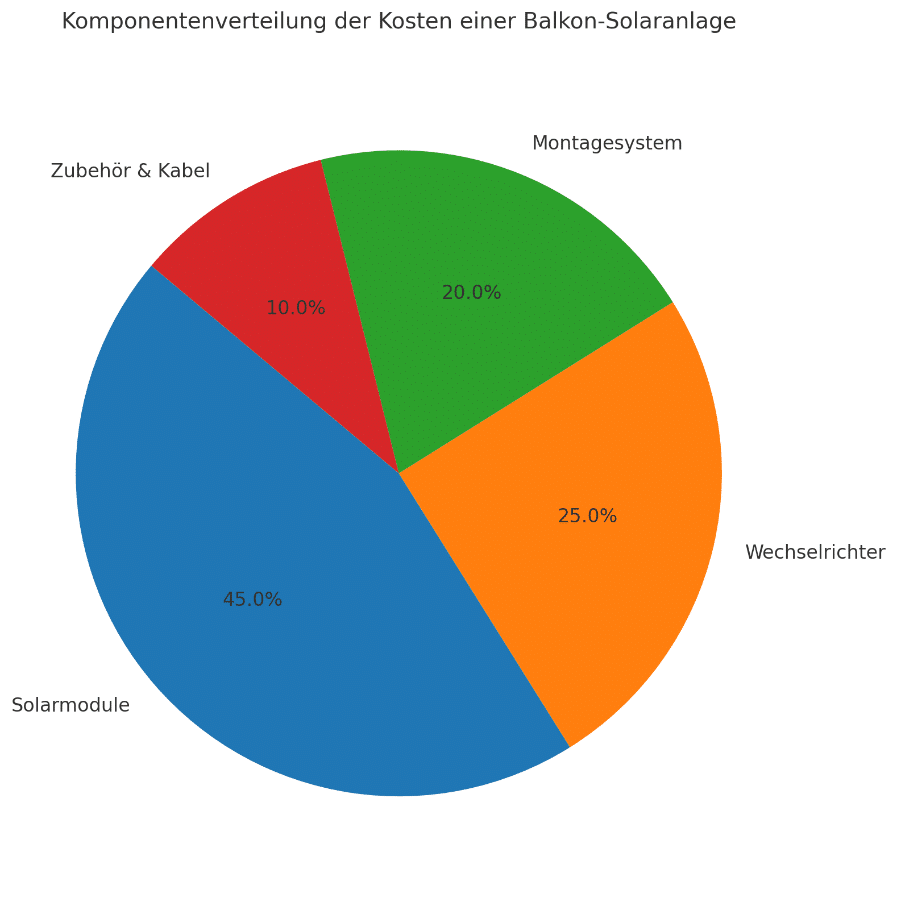 - Typische Kosten: Für eine Balkon-Solaranlage mit 2000 Watt (2 kWp) liegen die durchschnittlichen Kosten im Jahr 2025 zwischen 2.800 und 3.500 Euro inklusive Montage.
