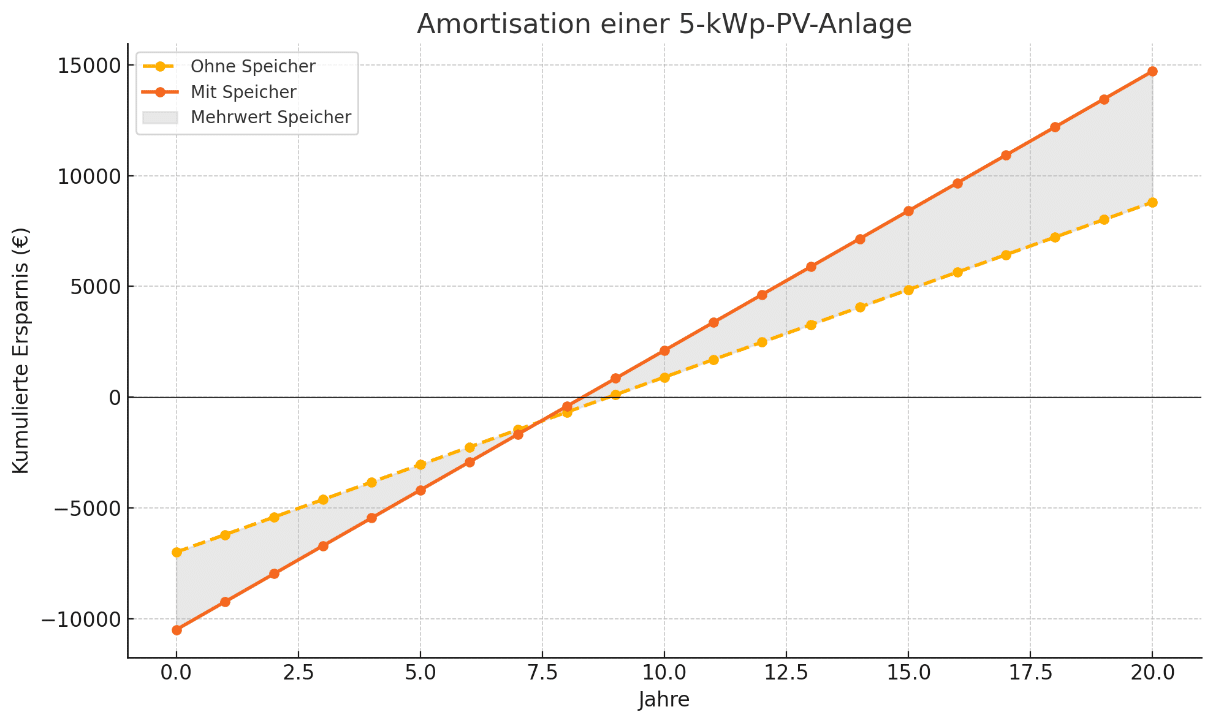 Die hier gezeigten Kosten, Einsparungen und Amortisationszeiten sind realistische Durchschnittswerte (Stand 2025). Tatsächliche Werte können je nach Anbieter, Standort, Marktentwicklung und individuellen Gegebenheiten variieren. Hole daher stets individuelle Angebote ein.