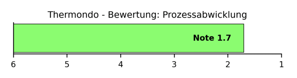 Die Prozessabwicklung bei Thermondo läuft meist reibungslos und zügig ab, punktuelle Abzüge gibt es nur für gelegentliche Verzögerungen und die etwas zu standardisierte Kommunikation.